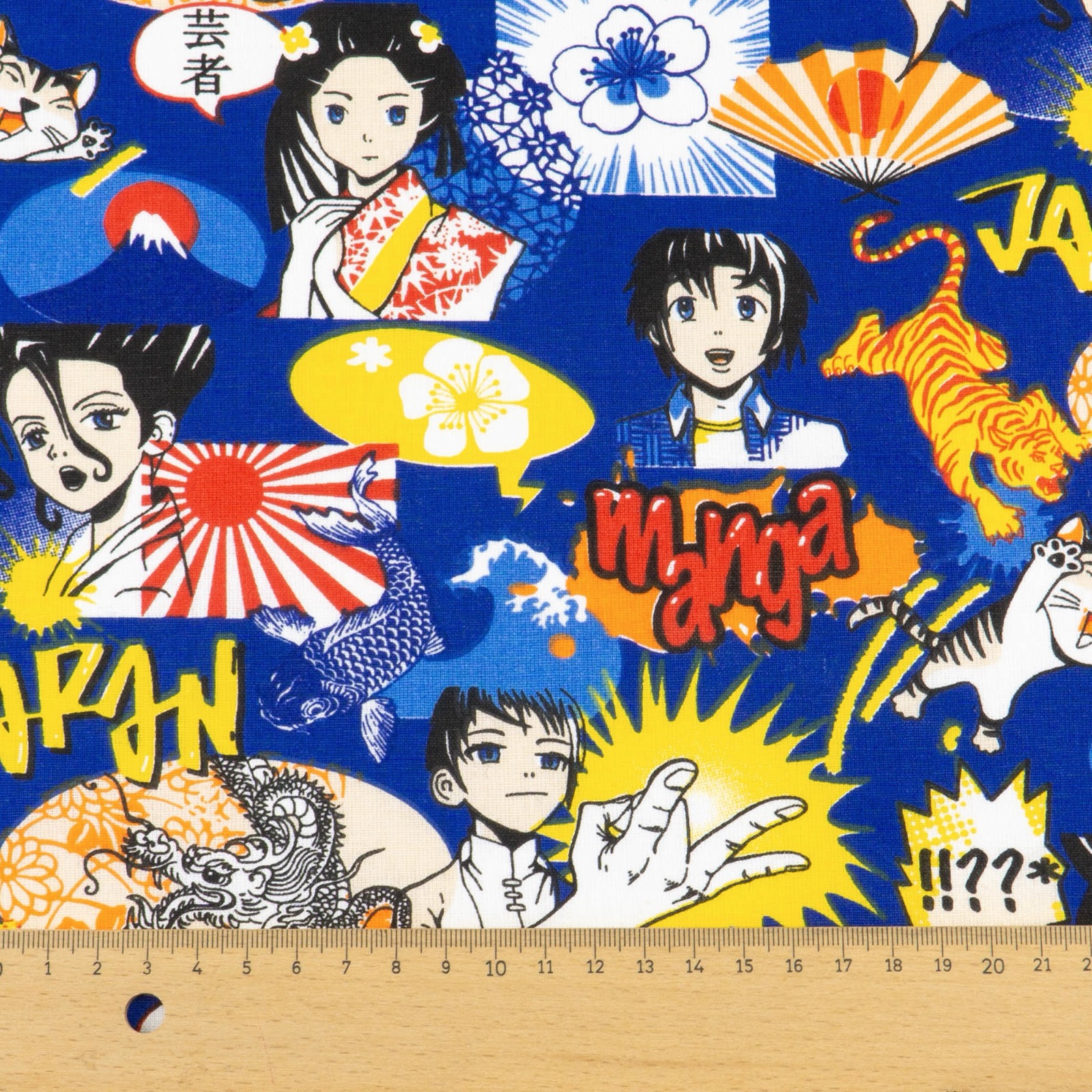 Leichtes Baumwollgewebe bedruckt mit asiatischen Manga / Comic Motiven. Geeignet z.B. für Blusen, Hemden sowie leichte Vorhänge und Taschen.
