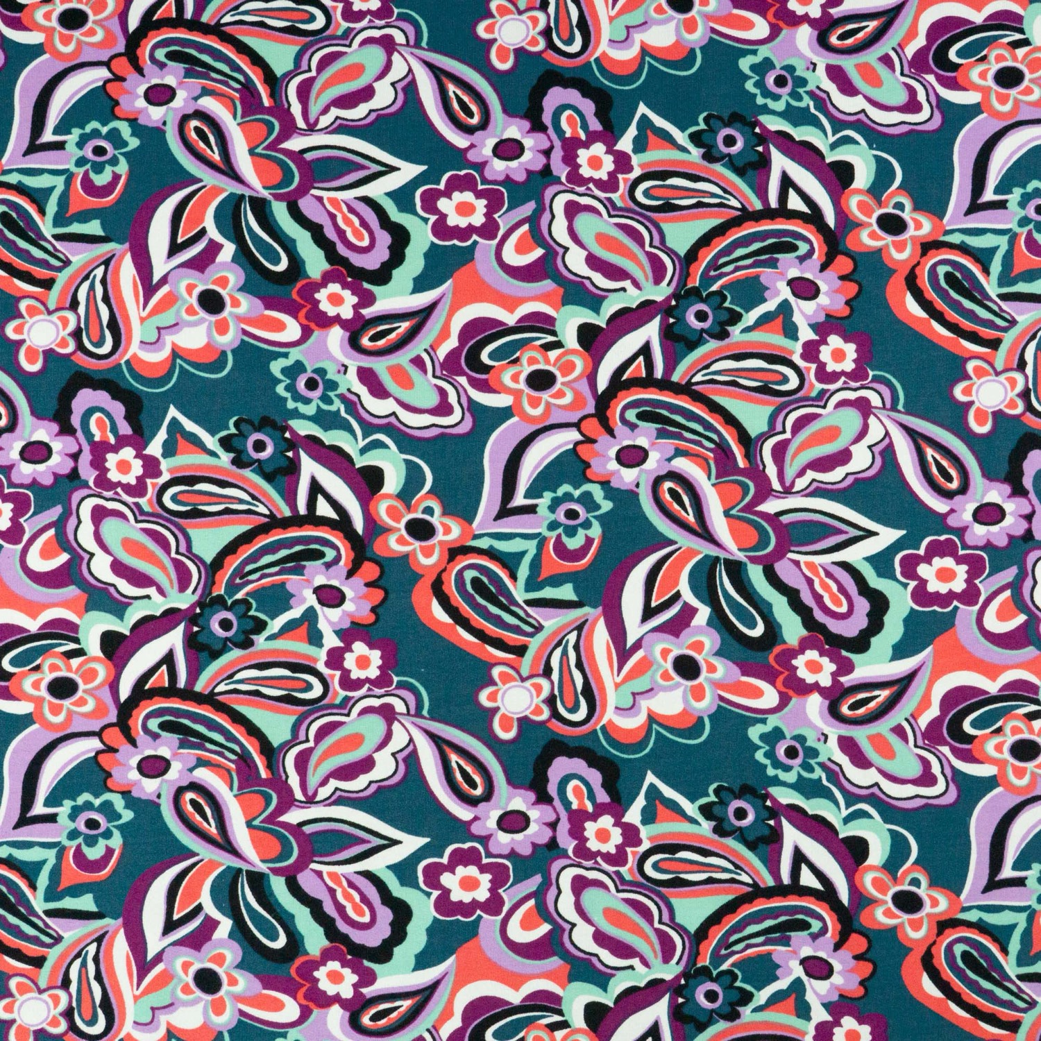 French Terry, petrol, mint, flieder, koralle, Paisley-Muster, florale Motive
