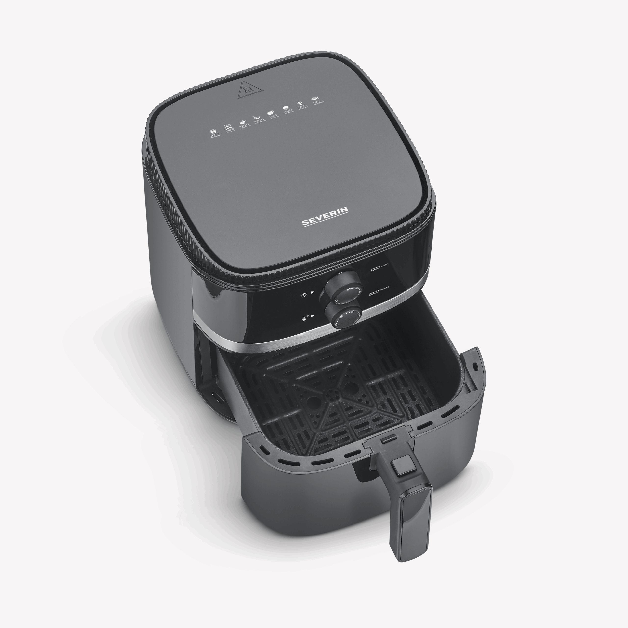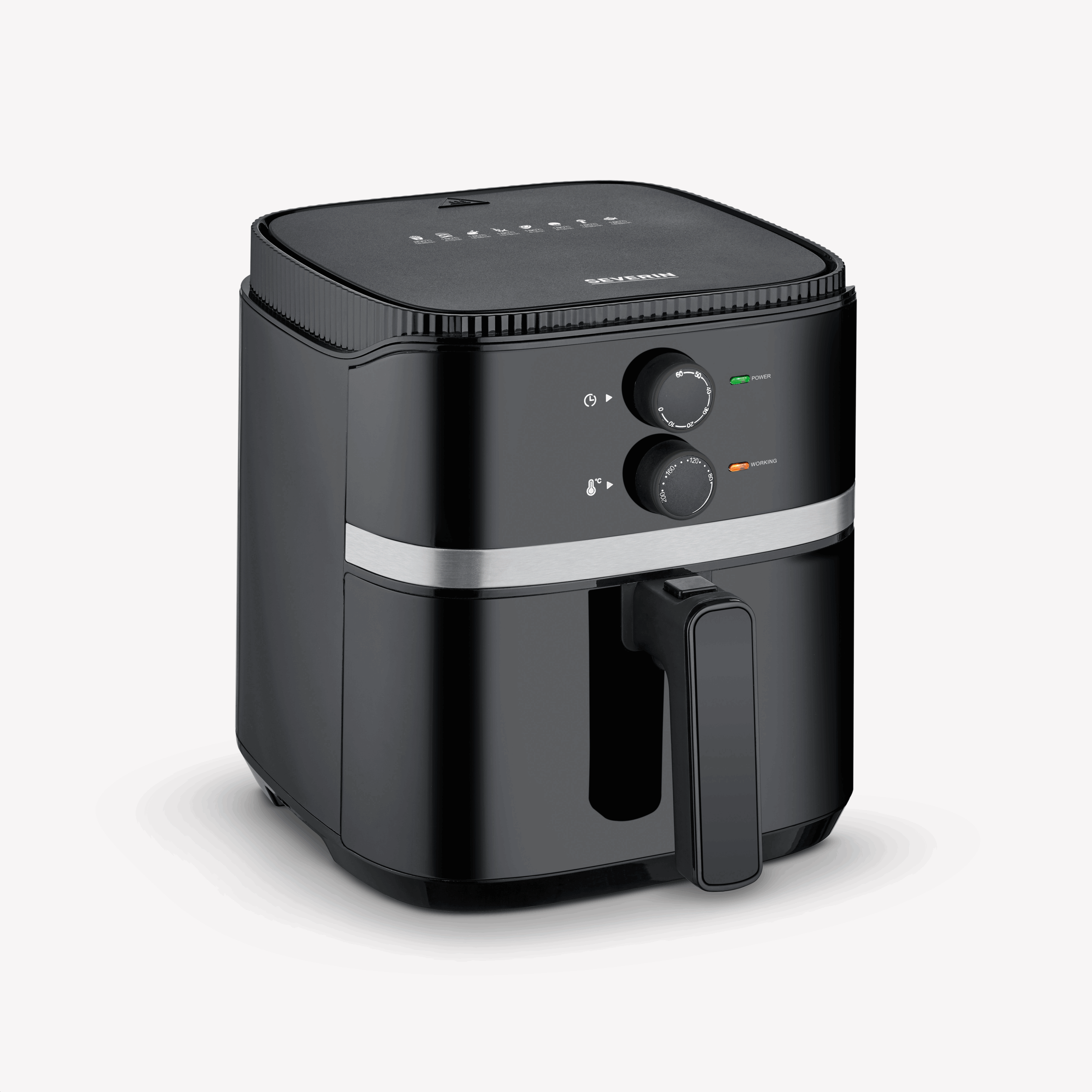 Ta frytkownica na gorące powietrze jest wszechstronnym urządzeniem kuchennym. Dzięki łatwemu w obsłudze ręcznemu sterowaniu można bardzo szybko rozpocząć przygotowywanie potraw. Temperaturę można indywidualnie ustawić w zakresie od 80 do 200°C, a 60-minutowy timer z sygnałem dźwiękowym przypomni, kiedy potrawa będzie gotowa. Dzięki komorze o pojemności 5 litrów i koszowi do smażenia o pojemności 4,3 litra można przygotować do 800 g frytek.