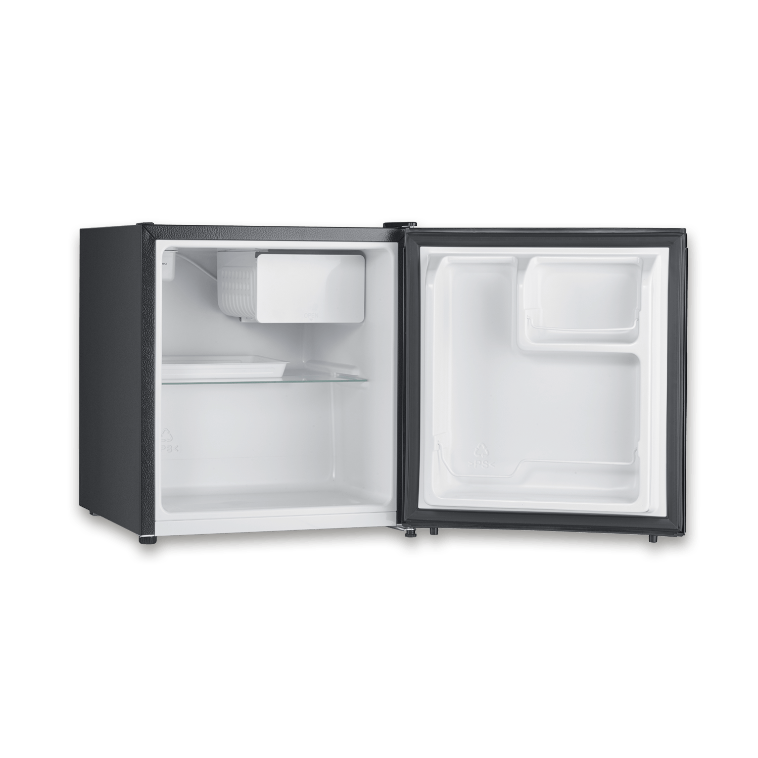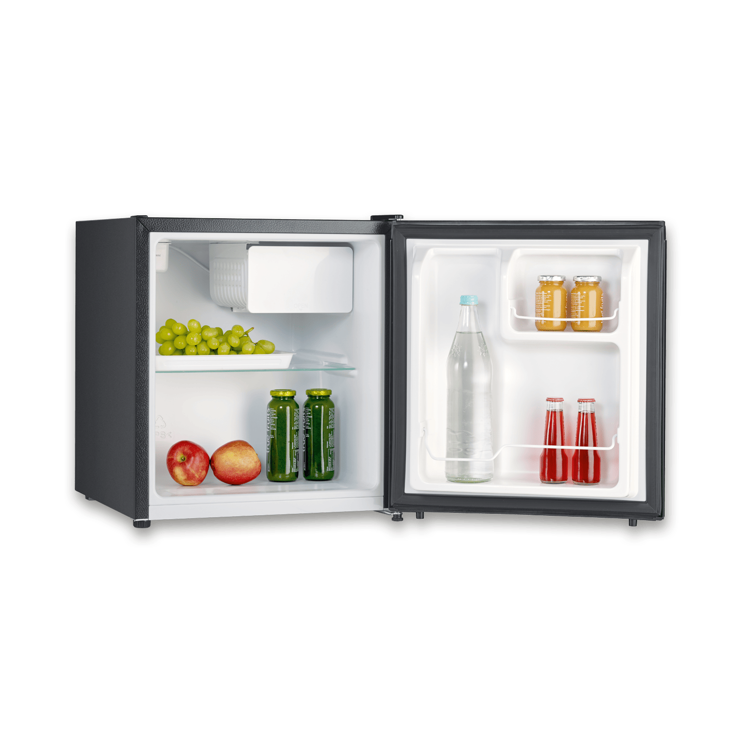Este minifrigorífico tiene una capacidad de 45 litros y pertenece a la clase de eficiencia energética E. Tiene 2 compartimentos en la puerta y 1 estante de cristal para almacenar alimentos. Un asa integrada facilita su transporte y las bisagras de la puerta pueden cambiarse para adaptarla a las necesidades individuales. Las medidas del dispositivo son 50 x 44,5 x 46,8 cm.
