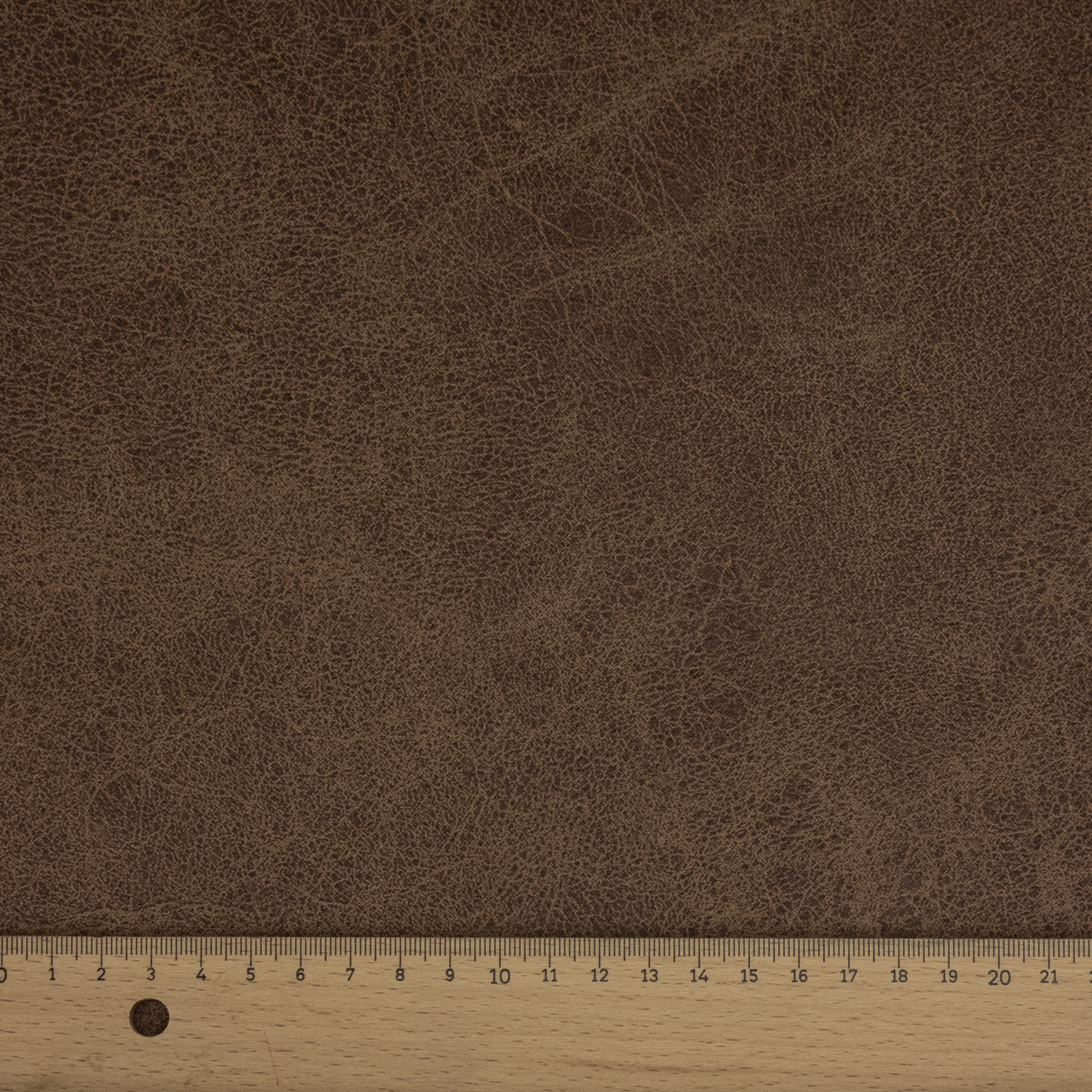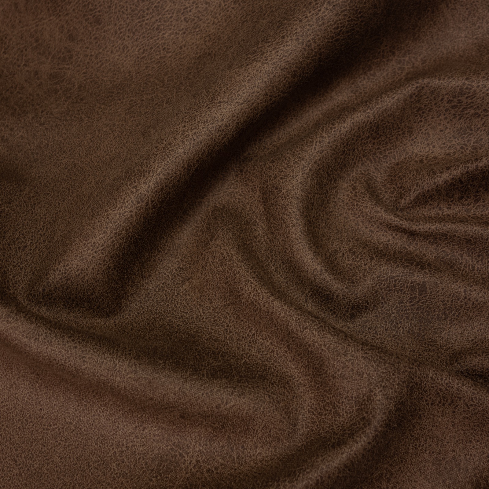 Lederimitat mit farblich leicht aufgehellter Narbenprägung in warmen Brauntönen sowie schwarzer Vliesabseite. 33.000 Scheuertouren, geeignet für Polsterarbeiten,Heimtextilien und Taschen.