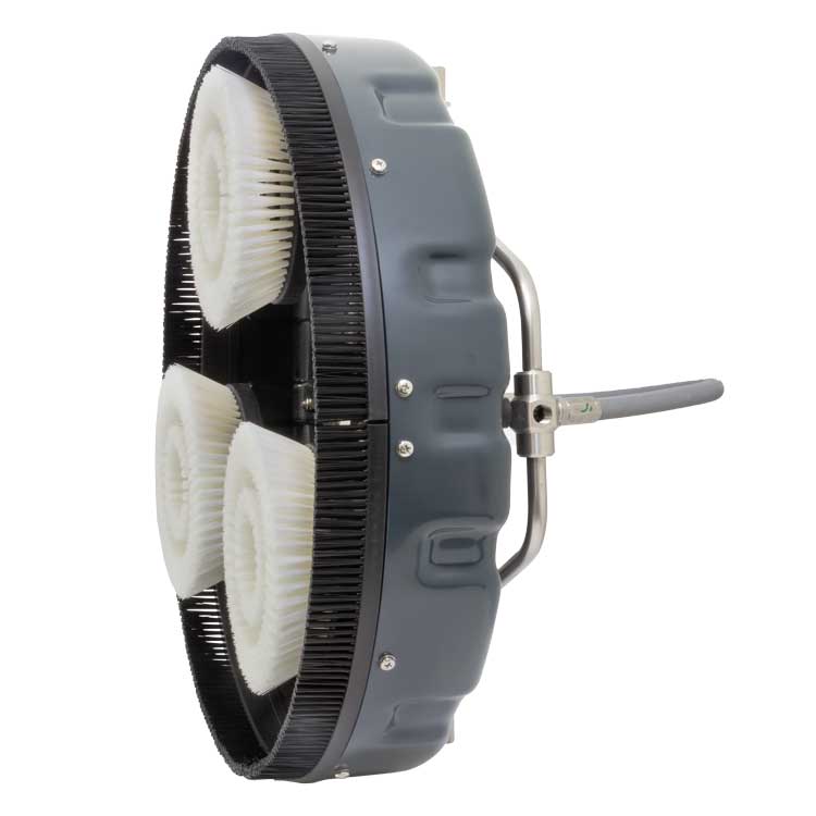 Ein Spritzschutzkranz schützt vor herumfliegendem Schmutz und sorgt für eine gut befeuchtete Reinigungsfläche, sodass die Bürsten eine einwandfreie Reinigung erledigen.