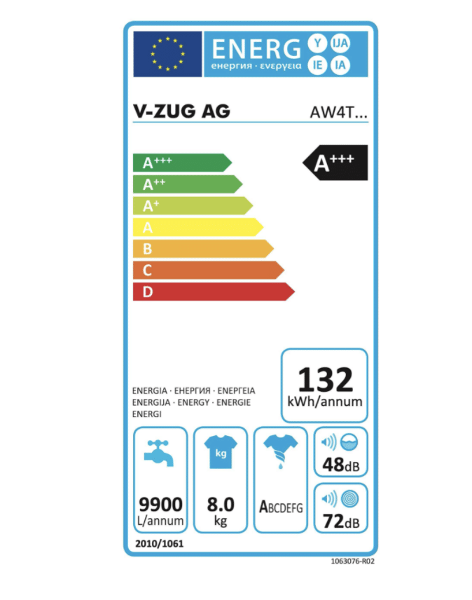 - Energieverbrauch pro Zyklus im Programm “eco 40-60”: 0.536