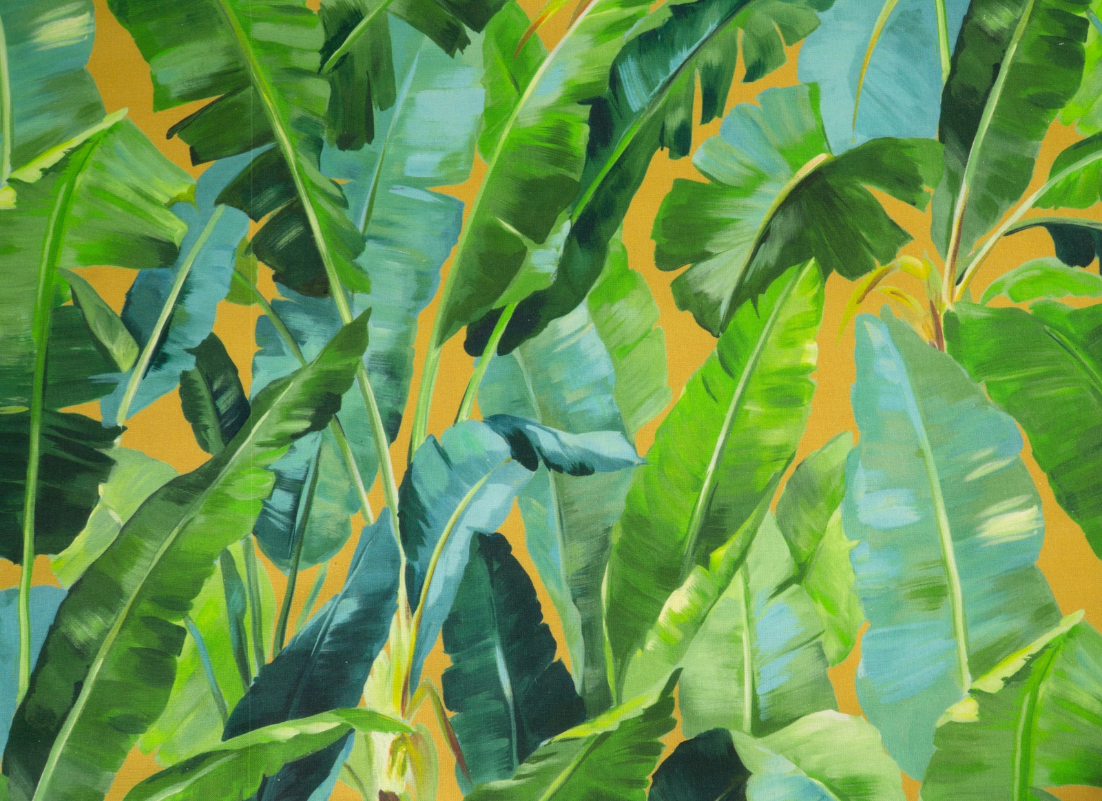 Dekostoff aus reiner Baumwolle bedruckt mit Palmenblättern. Geeignet z.B. für Vorhänge, Kissen und Taschen.