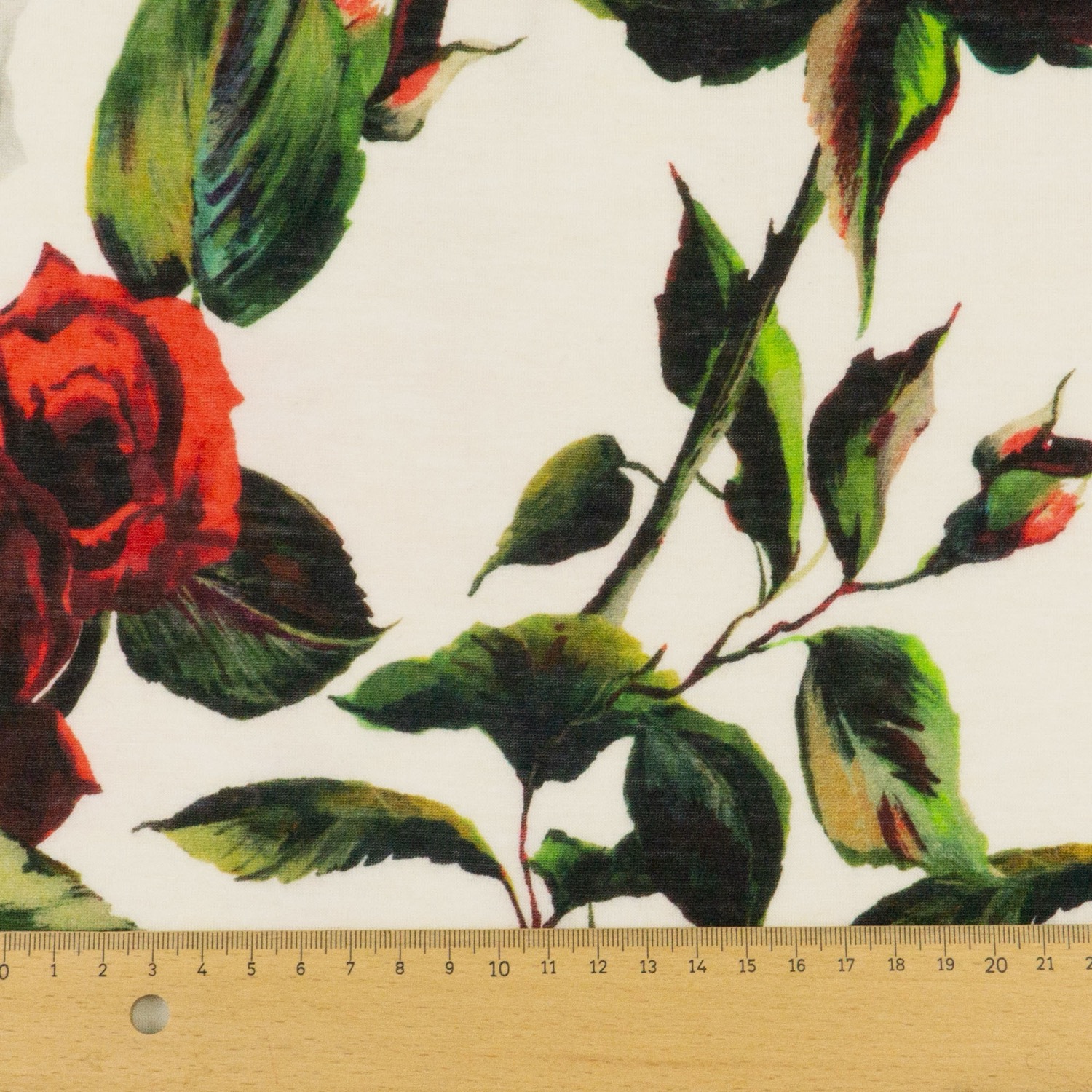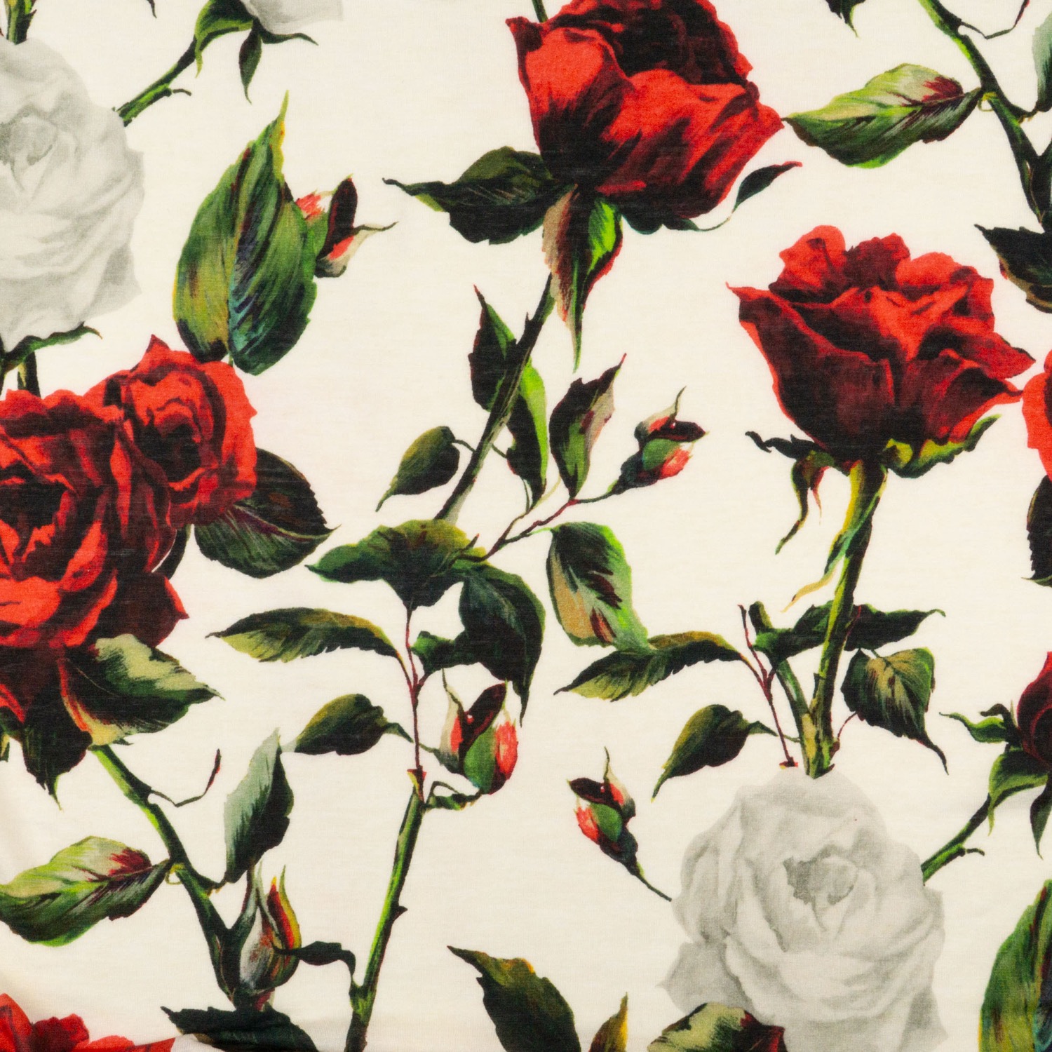 Modaljersey, offwhite, rot, grün, florale Motive